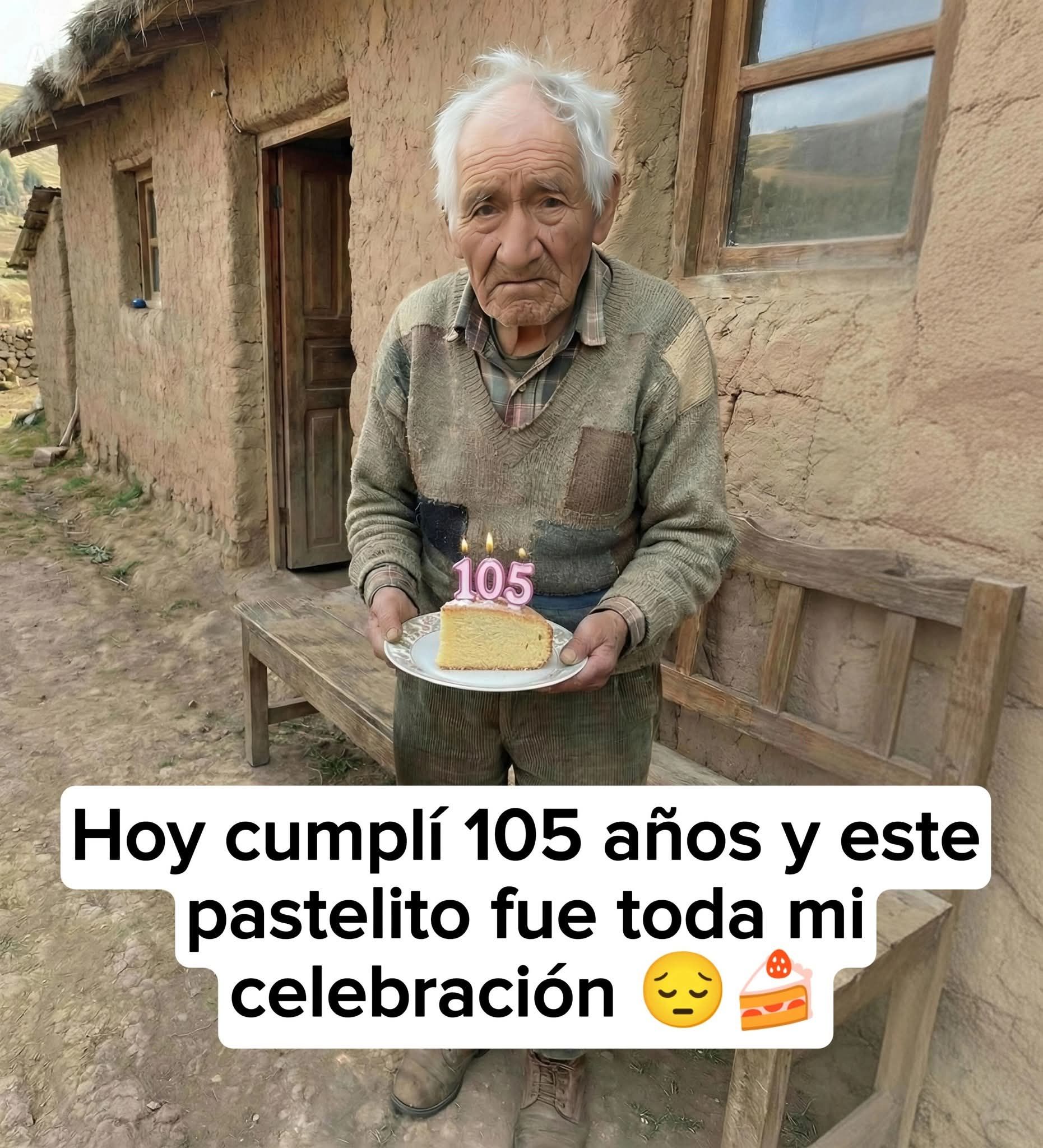 105 AÑOS DE VIDA Y UNA CELEBRACIÓN SENCILLA QUE LO DICE TODO 🎂🕯️ Don Aurelio cumplió 105 años rodeado de lo poco que siempre tuvo y de todo lo que supo construir con esfuerzo. Su casa humilde fue testigo de una vida larga, de trabajo constante y de sacrificios silenciosos hechos por su familia. Ese día decidió preparar un pequeño pastel. No era grande ni elaborado, pero tenía un significado especial. Lo hizo con la ilusión de compartirlo, de recibir una visita, de sentir que ese día no pasaría como cualquier otro. El tiempo avanzó lentamente. El camino permaneció vacío y la tarde se fue apagando sin anuncios. Don Aurelio se sentó con calma, encendió su vela y celebró a su manera, sin reproches y sin rencor. Cumplir 105 años no es solo llegar a una cifra, es demostrar que la vida puede vivirse con dignidad incluso cuando la compañía no llega. Su fortaleza quedó intacta, como siempre.