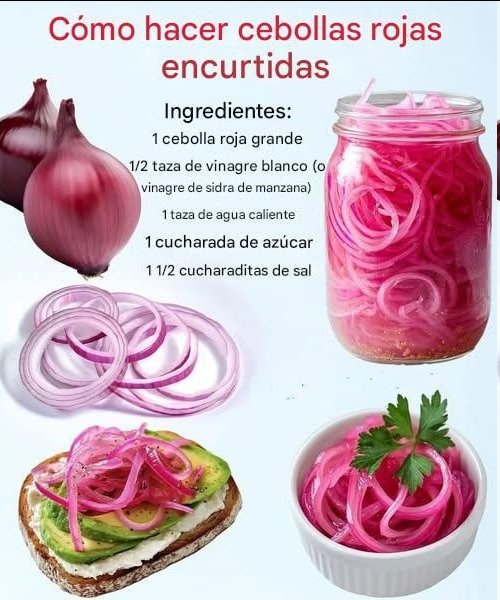 Ingredientes: 1 cebolla roja grande, cortada en rodajas finas 1/2 taza de vinagre de sidra de manzana 1/2 taza de agua 1 cucharada de azúcar granulada 1 1/2 cucharadita de sal Complementos opcionales: 1 diente de ajo (machacado), 1/2 cucharadita de granos de pimienta negra, 1 hoja de laurel o algunas hojuelas de pimiento rojo … Read more